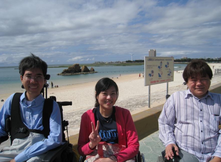 這趟沖繩之行,受到了長位夫婦與海豚(日文) 自立生活中心的諸多工作人員盛情的接待,但是礙於我語言上的障礙,所以沒辦法很完整的表達我內心的感謝,也因此造成許多不便與困擾給大家;在沖繩的這一段時光中,除了我個人的感受跟體驗以外,非常感謝大家都能很有耐心的聆聽我攏長的問題,並且給我很詳細的答案,因為這些答案給了我很明確的方向與目標,使我將努力的在往後的日子裡慢慢實現,雖然推動[自立生活]的觀念與制度,台灣還有很長的一段路要走。但是,我已經藉由在沖繩大家的努力之下,證實了:即使是再重度的障礙者也能藉由自立生活,擁有完整的人生與生命的自主權,這是正確而且必然的道路。